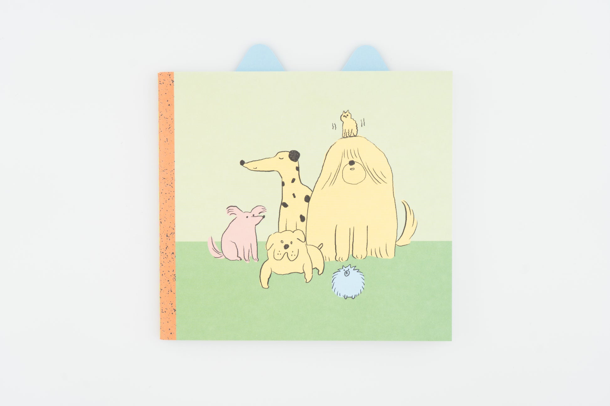 A plain notebook featuring charming illustrations of whimsical cat and dog families. Each notebook comes with a cute ear-shaped bookmark, perfect for noting the notebook's theme, you goals, or favorite sentences. Made with 120g thick recycled paper for a premium writing experience.