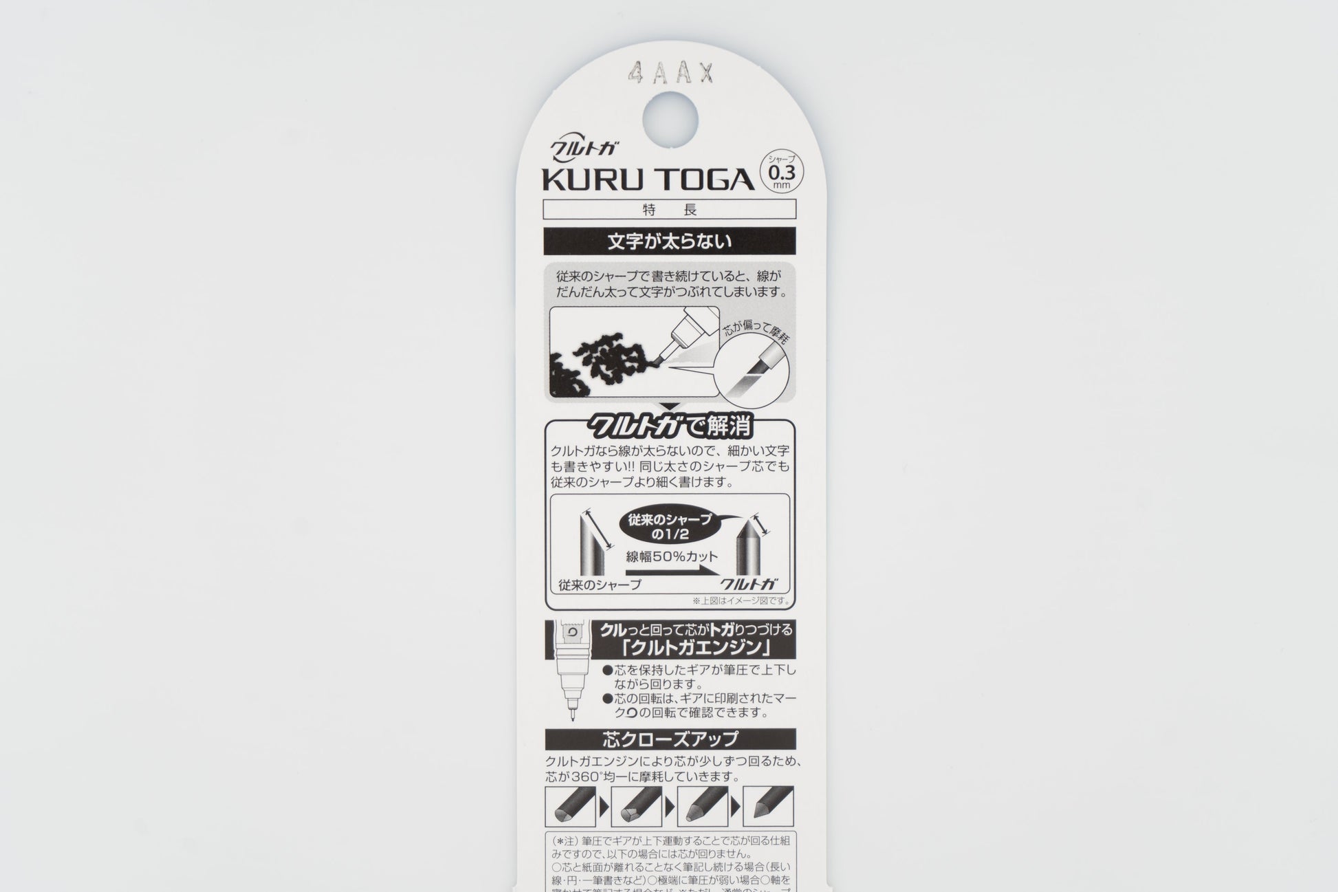 Kuru Toga features a unique rotating mechanism that keeps the lead sharp by automatically turning it with each stroke.